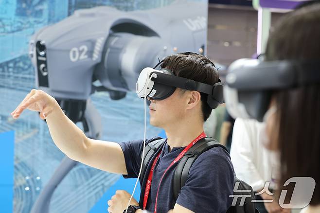 (서울=뉴스1) 신웅수 기자 = 14일 서울 강남구 코엑스에서 열린 국제인공지능대전에서 관람객들이 인공지능(AI)과 가상현실(VR)을 활용한 제품을 체험하고 있다. 2025.5.14/뉴스1