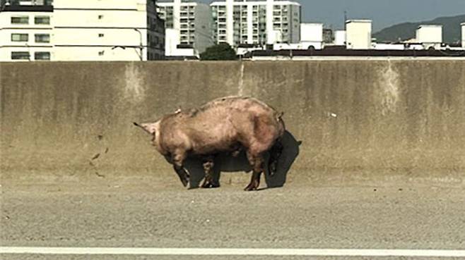 ▲ 고속도로에 떨어진 돼지