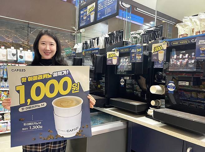 GS25는 자체 커피 브랜드 카페25에서 지난 3월부터 물가 안정 상품으로 천원 커피를 출시했다. 이를 통해 최근까지 카페25에서 커피를 구입한 전체 고객 수가 지난해 대비 80% 이상 늘며 '매출 효자' 상품으로 자리 잡았다.