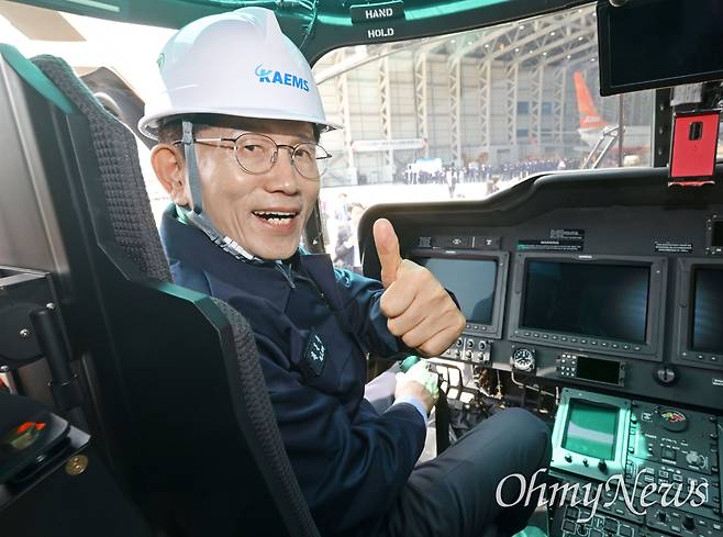 | ▲ 산림청 헬기 탄 김문수 후보 김문수 국민의힘 대선 후보가 14일 경남 사천시 항공정비업체인 한국항공서비스(KAEMS)를 방문해 산림청 헬기에 탑승하고 있다. |