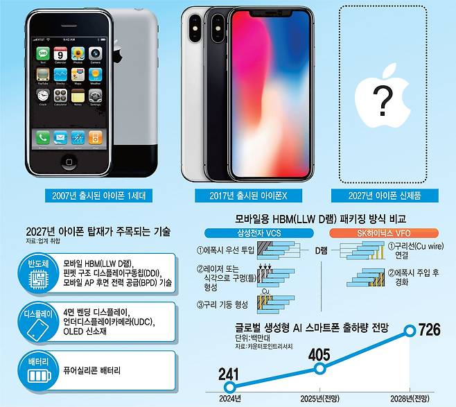 애플이 2027년 선보일 아이폰 개발에 착수하면서 업계 관심이 집중되고 있다. 아이폰 출시 20주년을 맞아 대대적인 기술 혁신을 추진해서다. 애플은 연간 2억대의 스마트폰을 판매하는 글로벌 메이커일 뿐만 아니라 전 세계 스마트폰 시장 트렌드를 선도하고 있는 기업이다. 애플의 신기술 채택은 곧 산업과 시장의 변화를 뜻해 아이폰 공급망 진입에 퀄컴, TSMC는 물론 삼성전자, SK하이닉스와 같은 글로벌 기업들이 노력을 기울이고 있다.