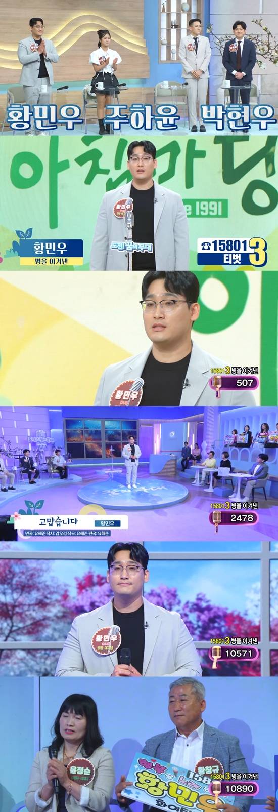 이날 황민우 씨는 유해준의 '고맙습니다'를 열창했다.