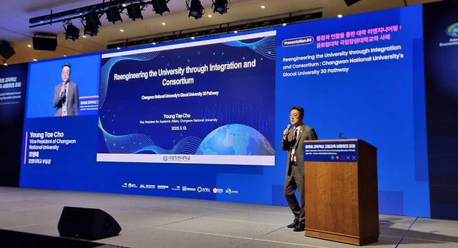 국립창원대학교(총장 박민원)는 5월 12~13일 제주에서 열린 ‘2025 제주 RISE–글로컬대학 포럼’에 참가해 '통합과 연합을 통한 대학 리엔지니어링 : 글로컬대학 국립창원대학교의 사례'를 주제로 조영태 교학부총장(글로컬대학사업단장)이 주제발표를 진행했다.