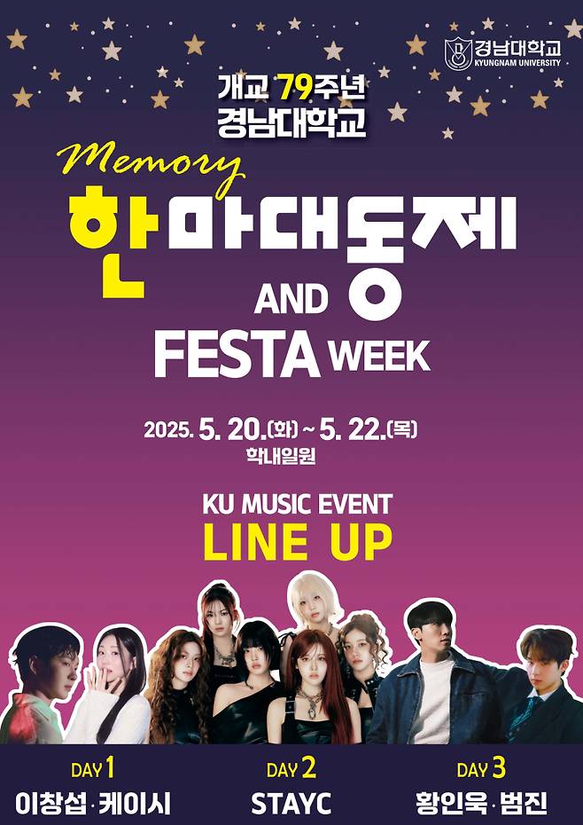 경남대학교(총장 박재규)가 개교 79주년을 맞아 오는 20일부터 22일까지 ‘한마대동제’를 개최한다. 이번 축제는 ‘지역민과 함께하는 글로컬 한마인’을 슬로건으로 지역사회와의 동행과 디지털 시대 인재 양성을 목표로 한 ‘경남대 Festa Week’와 함께 진행된다.