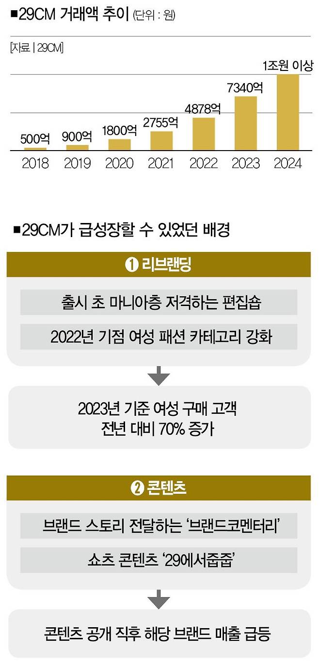 29CM 관계자는 "여성 패션 브랜드를 강화하고 2539 고객층(25세부터 39세)의 취향에 맞춘 리브랜딩으로 거래액이 늘어났다"며 "현재 여성 패션 생태계를 활성화하기 위해 신진 브랜드에 많은 투자를 하고 있다"고 말했다.