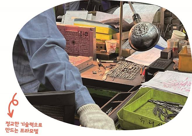 인터뷰를 마치고 공장으로 갔다. 전기가 흐르는 듯한 소리를 내면서 주황색 불꽃이 튀는 기계가 있었다. 마치 번개가 치는 것처럼 보였다. 전기 불꽃으로 쇠를 깎아서 완구의 틀인 금형을 만드는 기계였다. 대표님 방에도 들어가 봤다. 벽과 통로에 장난감이 가득했다.