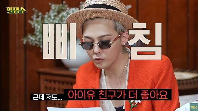 지드래곤은 "저도 아이유 친구가 더 좋다"라고 했고, 박명수는 "아이유가 명절 때마다 10년째 선물을 보내줘서 이렇게 됐네"라며 민망해했다.