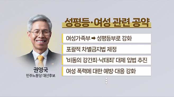 권 후보는 여성가족부는 폐기할 게 아니라, 기능을 확대·강화해 현재 존재하는 구조적인 성차별을 해소해야 한다고 강조했습니다.