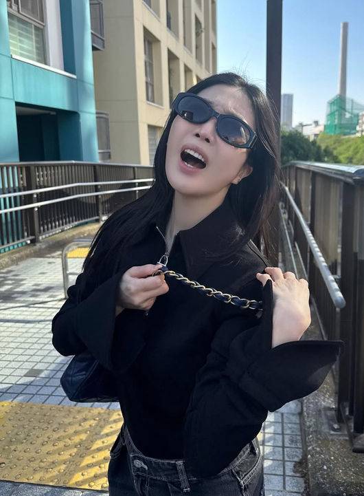검정 테가 두터우면서도 저만의 모양을 뚜렷하게 나타내는 선글라스를 낀 이해리는 우스꽝스러운 표정을 지으며 어딘가를 향한 탄식을 보이기도 했다.