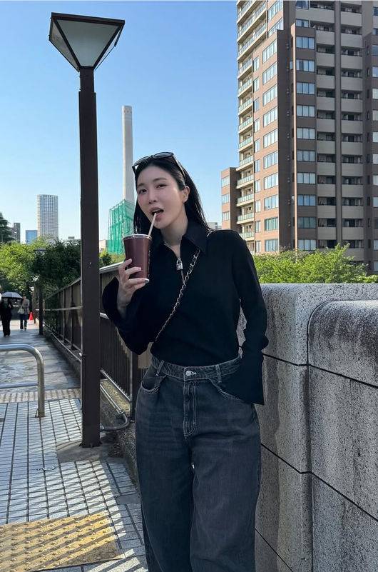 또한 이해리는 검정색 민소매 세트로 이뤄진 상의에, 체인으로 된 끈이 인상적인 가방을 매고, 통 큰 팬츠를 입어 MZ 세대의 유행을 따랐다.