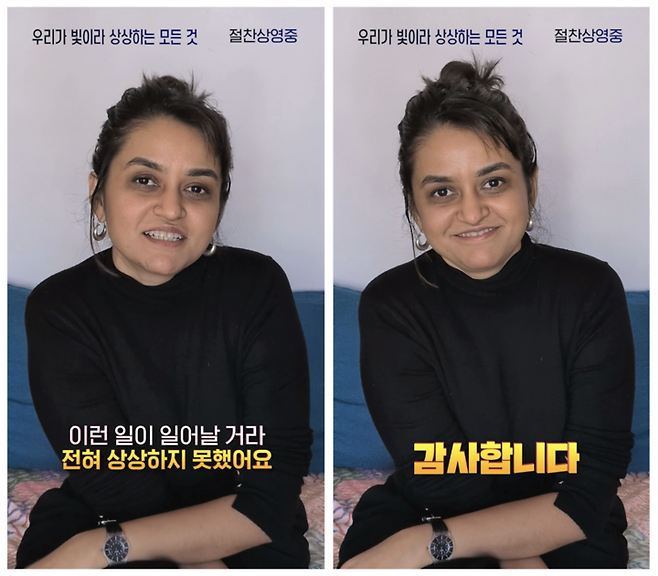 제77회 칸영화제 심사위원대상을 수상한 '우리가 빛이라 상상하는 모든 것'의 파얄 카파디아 감독이 지난 13일 한국 관객들을 위한 메세지를 담은 영상을 공개했다.