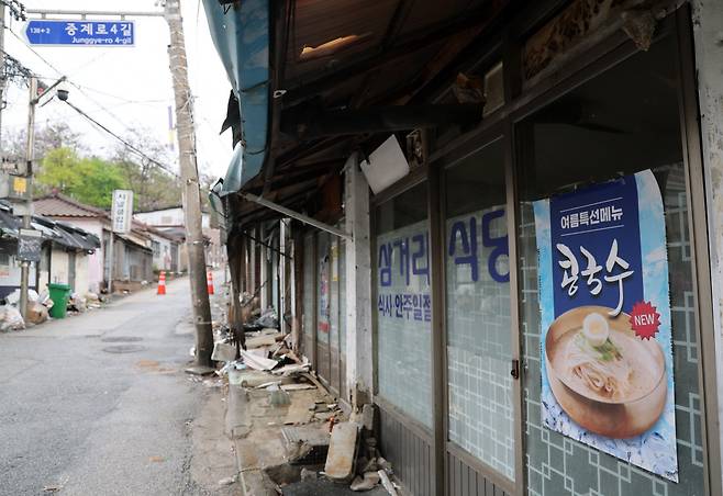 비좁은 골목을 나와 ‘삼거리식당’ 앞에서 걸음이 멈췄다. 휘어진 양철 지붕을 철제 구조물이 간신히 받쳐주고 있었다. 목이 좋아 한때는 값싸고 손맛 낸 음식으로 마을 사람들의 사랑방 역할을 했을 법한 곳이다. 팍팍한 일과를 마친 서민들이 허기를 채우고 삶의 애환을 쓴 소주로 달래던 그때의 모습이 눈에 선했다.