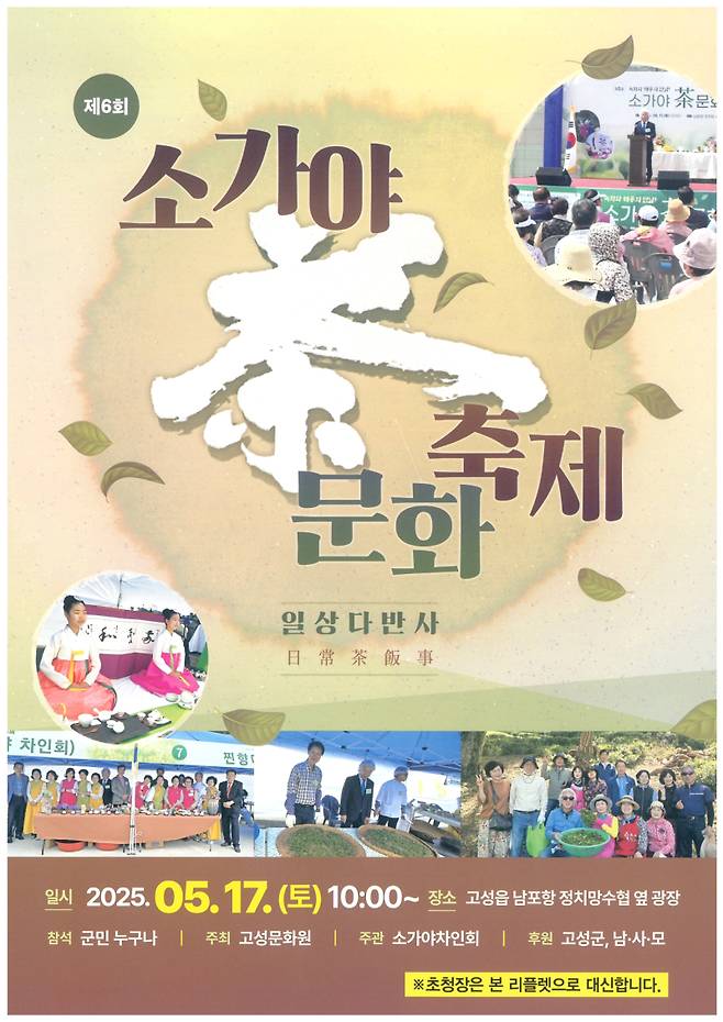 이번 축제는 고성문화원 소속 **소가야차인회(회장 어경효)**가 주관하며 다양한 지역 단체가 참여해 한층 풍성한 행사가 될 예정이다.