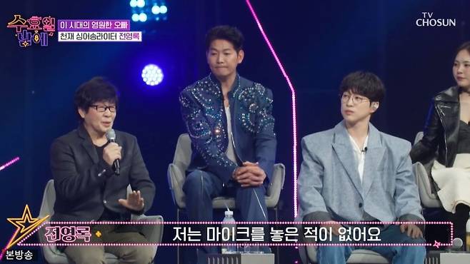 전영록은 근황에 대해 "마이크를 놓은 적 없다. 라방(라이브 방송)이란 걸 했다. 처음엔 나방인 줄 알았다"고 고백했다. 붐이 "좋댓구알?"이라고 묻자 전영록은 "좋댓구알 다 알죠. 내가 바보냐"라고 발끈했다. 김희재는 "저렇게 젊게 사니까 동안인가 보다"라며 "여기서 보고 있으면 전영록, 안성훈 씨가 좀 형제 같다"라고 밝혔다. 안성훈 역시 "선배님을 형이라고 부르고 싶다. 너무 동안이다"라고 말하기도.