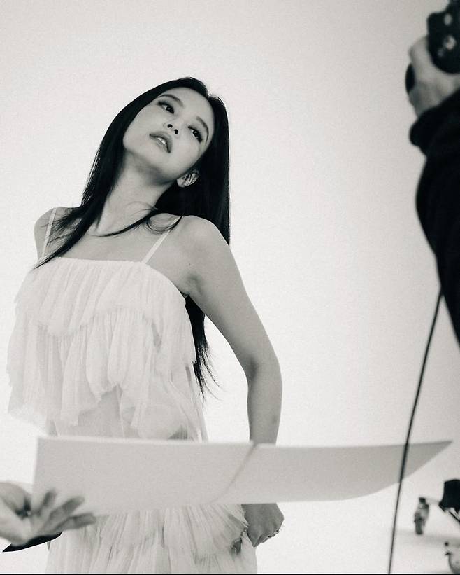 자신이 앰버서더로 있는 명품 브랜드로 멋을 내며 여러 패션을 선보인 제니는 눈빛만으로도 고혹적 분위기를 물씬 풍기고 있다.