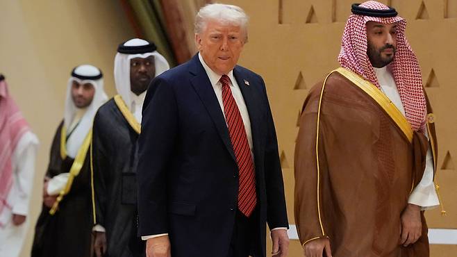 도널드 트럼프 미국 대통령은 중동 순방 이틀째인 현지시간 14일 사우디아라비아 수도 리야드에서 아메드 알샤라 시리아 임시대통령과 처음으로 만나 정상회담을 했습니다.