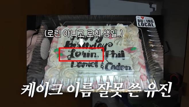 문제는 유진이 로희 양이 아닌 둘째 로린 양의 이름을 케이크에 새겼다는 것. 이에 로희 양은 "왜 내가 없어?"라고 물었고, 유진은 "엄마가 로린이 이름을 잘못 넣었다"라며 놀란 반응을 보였다.