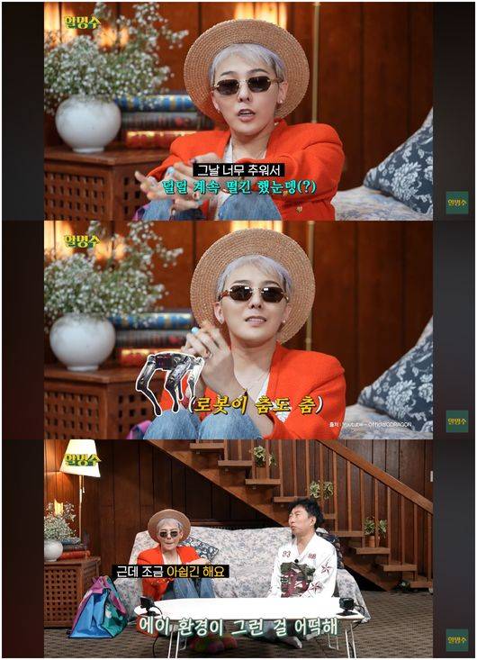 박명수는 “콘서트 잘 끝났냐”라며 근황을 물었다. 콘서트가 지연돼 많은 불만이 터져나왔던 GD의 콘서트. GD는 “8년 만에 하는 콘서트라 지인을 어떻게 초대하는지도 까먹었다. 그날 제 몫을 다하는 데 급급했다. 그리고 너무 추워서 벌벌 떨었다. 기계 때문에, 춥거나 하면 얼어서 딜레이도 많이 됐다”라면서 “그냥 잘했어야죠, 뭐. 아쉽긴 하다”라며 자신을 탓했다.