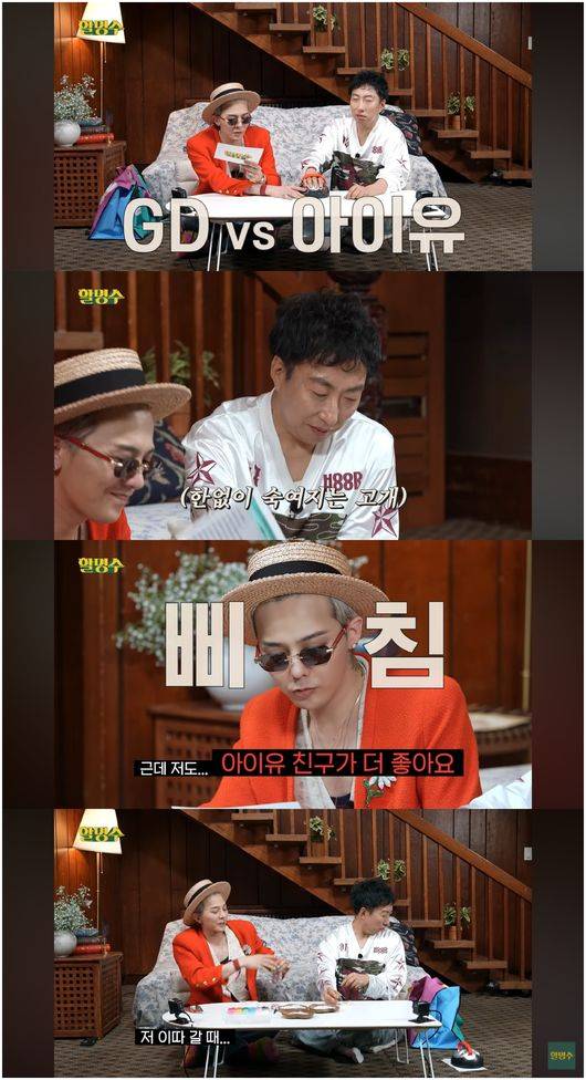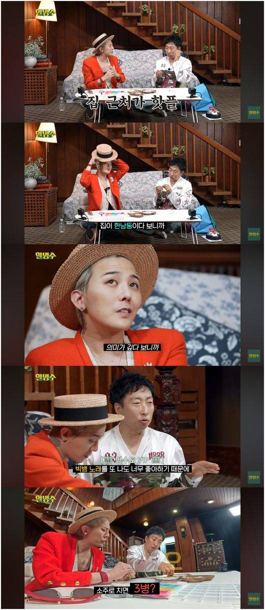 GD는 “아이유가 정말 잘 챙기지 않냐. 한 번은 냉장고가 선물로 와 있더라. 뭐지, 하고 열었더니 광고하는 주류를 가득 채워서 제가 군대 가기 전이었는데, 고주망태가 돼서 갔다”라며 입대 비하인드를 전했다.