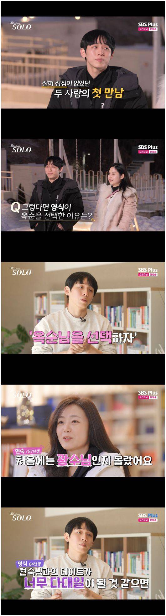 [OSEN=오세진 기자] ‘나는 솔로’ 영숙이 영수와의 과거 인연을 우선 숨기기로 한 가운데, 영자가 그 사실을 모르고 영철에게 발설했다.