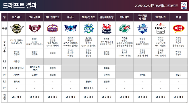 ◆ 2025-26시즌 PBA 팀리그 드래프트 지명 결과