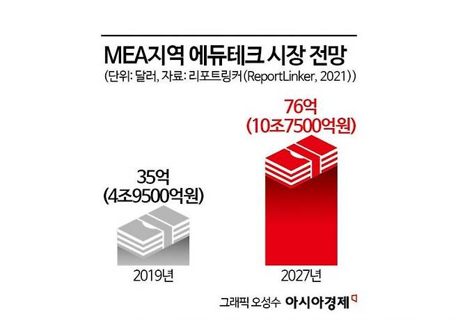 이 같은 행보는 중동 국가들의 탈(脫)석유 전략과 교육 시장 성장성이 맞물린 결과로 풀이된다. 미국 시장조사기관 리포트링커는 중동 및 아프리카(MEA)의 에듀테크 시장이 2019년 35억달러(4조9500억원)에서 2027년 76억달러(10조7500억원) 이상으로 성장할 것으로 전망했다.