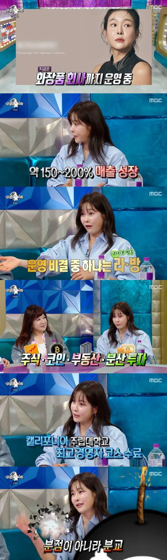 이날 방송에서 현영은 뜻밖의 근황을 전했다. 현영은 "요즘 여러 분야를 공부하면서 배우고 있다. 원래 의류 사업을 했었고, 지금은 화장품 사업을 시작했다"고 했다.
