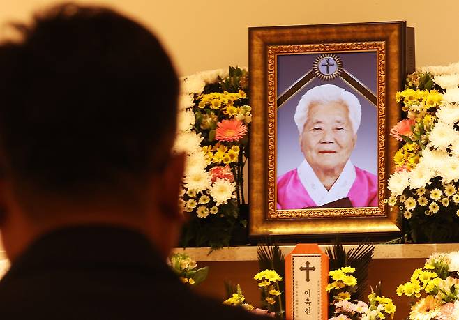 | ▲ 건강 악화로 별세한 일본군 위안부 피해자 이옥선 할머니 빈소가 12일 경기도 용인시 수지구 쉴낙원 경기장례식장에 마련돼 있다. 부산 출신인 이 할머니는 14살 때 중국으로 옌지(延吉)로 끌려가 3년간 일본군 위안부로 고초를 겪었고 해방 후에도 중국에 머물다가 2000년 6월 58년 만에 귀국해 이듬해 어렵게 국적을 회복했다 |