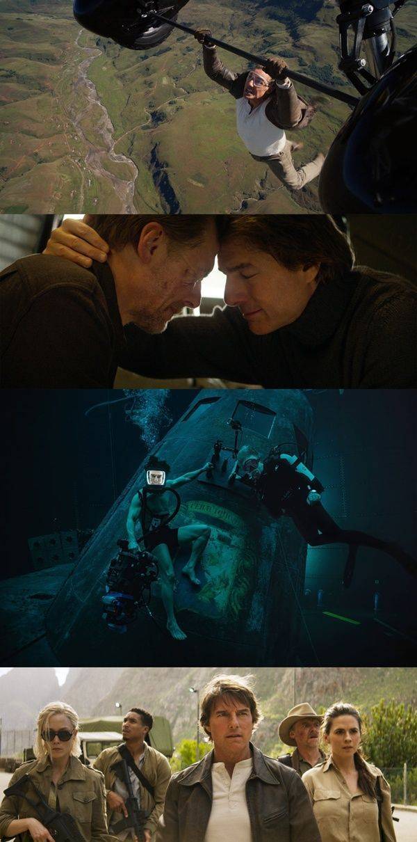 이에 대적하는 톰 크루즈의 액션도 못지않게 압도적이다. 그간 '미션 임파서블' 시리즈에서 보여준 액션이 총집합했다 해도 과언이 아니다. 육지, 바다, 하늘 위를 뛰고 날고 구르며 온몸을 내던진다. 60살이 넘는 톰 크루즈지만, 에너지만큼은 청춘이다. 비행기 날개 위에 매달려 요리조리 피해 다니고 걷는 모습은 경이로울 수준. 이산화탄소 섭취량을 파악하며 찍었다는 극한의 수중 액션도 목숨을 건 만큼 높은 퀄리티를 보여준다.