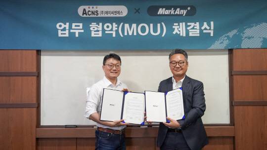 AI 보안 기술 전문기업 ㈜마크애니는 개인정보 비식별화 전문기업 ㈜에이씨엔에스(ACNS)와 14일 전략적 업무협약(MOU)을 체결했다고 밝혔다.