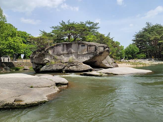 | ▲ 수승대/거북바위 250여 명의 선비들이 남긴 서각이 빼곡히 차 있다 |