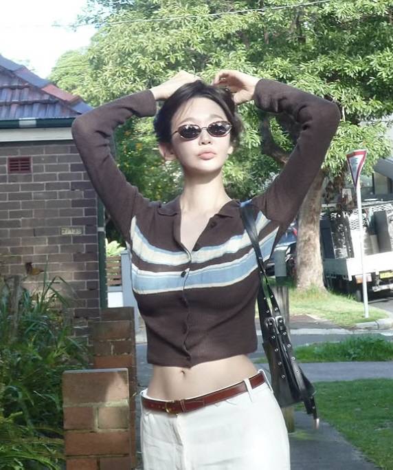 강민경은 14일 자신의 계정에 "헤헤 많이 많이 웃자"라며 사진을 여러 장 게재했다. 공개된 사진에서 강민경은 니트 셔츠에 와이드 팬츠를 매치한 시크한 패션을 선보였다. 머리를 들어 올리는 포즈를 취하면서 살짝 올라간 상의 사이로 선명한 11자 복근이 드러나 눈길을 끈다.