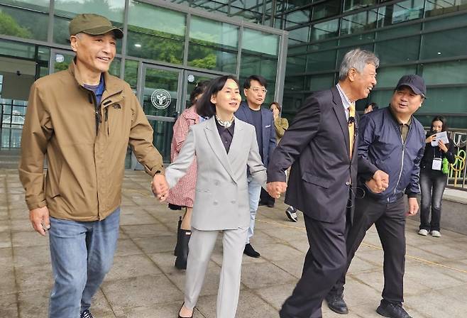 ◇ 김현정> 세상에. 지금 저희가 사진 보고 있는데 지금 제자들하고 손잡고 계시네요.
