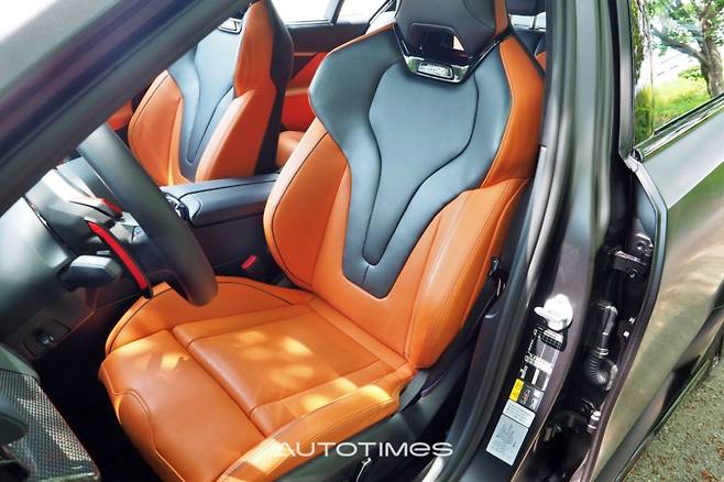 시승차는 탄소섬유 파츠를 추가로 달았는데 스플리터와 사이드 스커트, 사이드미러, 스포일러, 디퓨저 등이 훨씬 강렬해졌다. 특히, M 카본 루프의 경우, 파노라믹 글라스 루프 대비 30.5㎏ 경량화로 무게 중심을 낮춰 주행 성능 개선에도 기여한다.