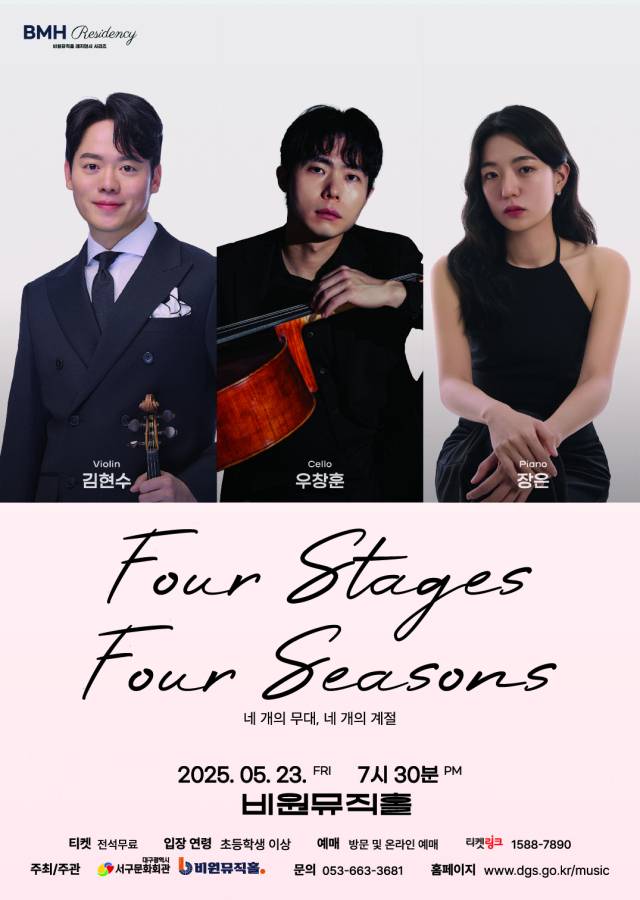 비원뮤직홀이 오는 23일(금) 오후 7시 30분 공연제작지원 프로그램 첫 무대로 '네 개의 무대, 네 개의 계절' 공연을 선보인다. 이번 공연은 청년 음악가를 지원하는 BMH 사운드 레지던시 시리즈의 일환으로, 입주 음악가가 직접 기획하고 제작에 참여한 무대다.