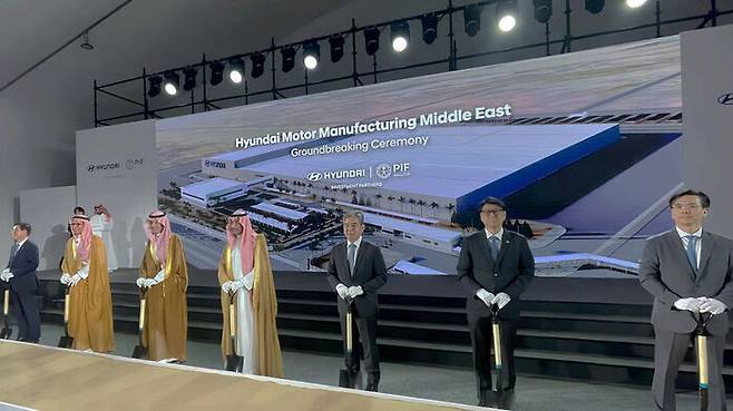 오늘(15일) 현대차그룹에 따르면 현대차는 지난 14일(현지시간) 사우디 킹 살만 자동차 산업단지에서 중동 지역의 첫 생산 거점인 현대차 사우디 생산법인(HMMME) 공장 착공식을 열었습니다.