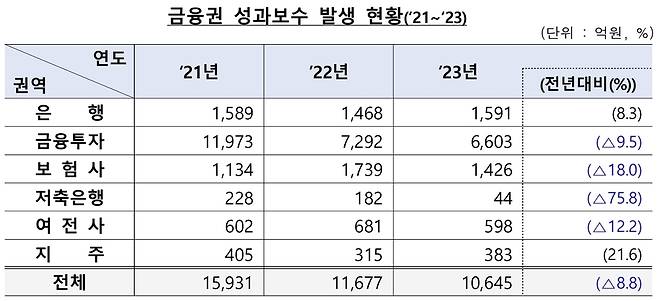 [2021~2023년 금융권 성과보수 발생현황 (자료=금융감독원)]