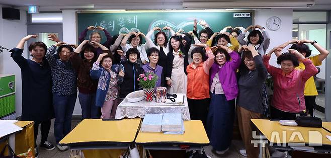 [서울=뉴시스] 김선웅 기자 = 스승의 날인 15일 서울 마포구 소재 일성여자중고등학교에서 만학도 학생들이 교사에게 감사의 마음을 전하고 있다. 2025.05.15. mangusta@newsis.com