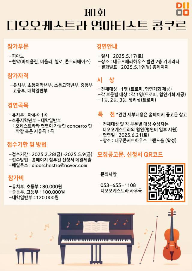 이번 대회는 디오 오케스트라가 주최·주관하며 국내 유망한 차세대 음악 인재들을 발굴하고 그들의 성장을 응원하는 무대가 될 전망이다.