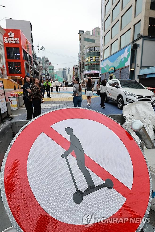 전국 최초인 킥보드 없는 거리는 홍대 레드로드와 반포 학원가에서 운영된다. 통행금지 시간은 낮 12시부터 오후 11시까지다. 2025.5.15