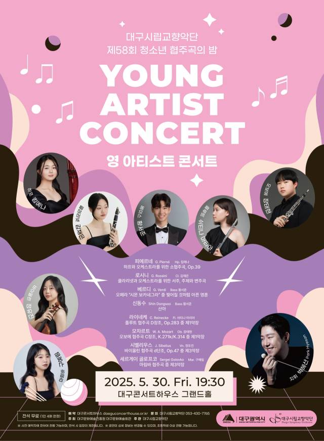 대구시립교향악단의'제58회 청소년 협주곡의 밤 : 영 아티스트 콘서트'가 오는 5월 30일(금) 오후 7시 30분 대구콘서트하우스 그랜드홀에서 열린다.