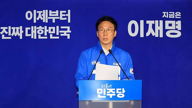 ▲ 더불어민주당 김민석 상임공동선대위원장이 15일 서울 여의도 중앙당사에서 기자간담회를 하고 있다.
