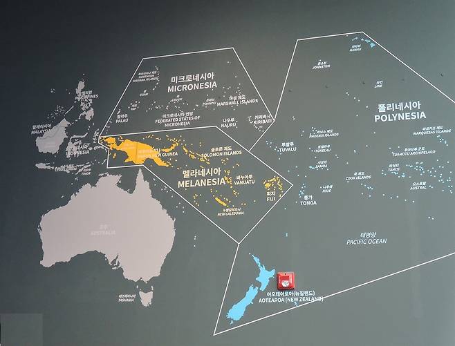 | ▲ 전시장 입구에 그려놓은 오세아니아 지도 |