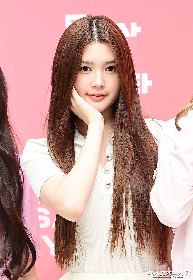 이날 행사에 참석한 하츠투하츠 에이나가 포즈를 취하고 있다.
