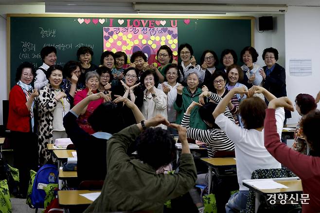 스승의날인 15일 서울 마포구 일성여자중고등학교. 교실 곳곳에서 학생들의 ‘스승의 은혜’ 합창 소리가 울려 퍼졌다. 학생들은 선생님에게 카네이션을 전달하고 감사 편지를 읽었다. 칠판에는 선생님에게 쓴 메시지가 적힌 하트 모양의 색종이가 빼곡히 붙어 있었다.