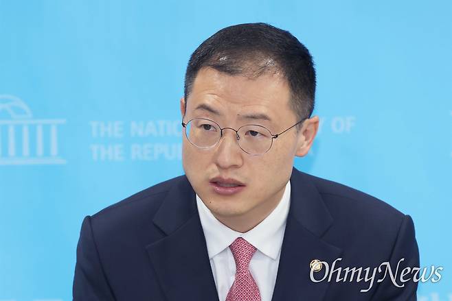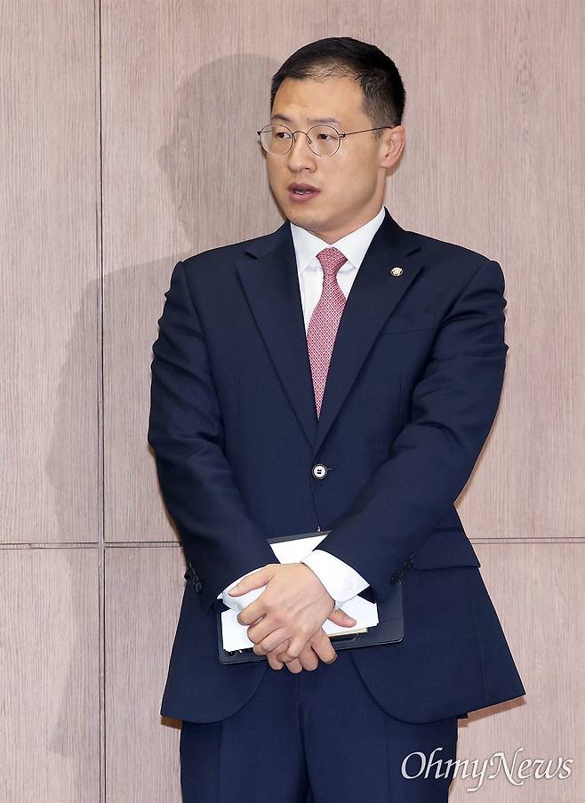 | ▲ 국민의힘을 탈당한 김상욱 의원이 15일 서울 여의도 국회 소통관에서 기자회견을 열고 이재명 더불어민주당 대선후보 지지 선언을 하기 위해 대기하고 있다. |