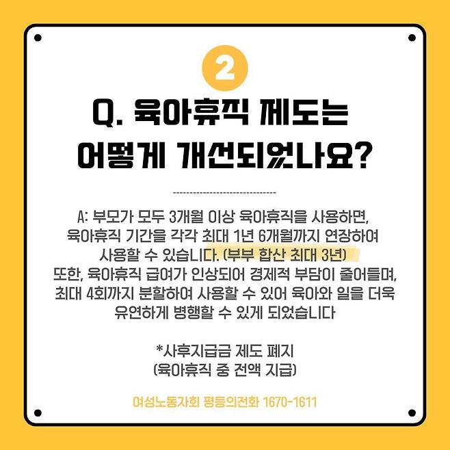 | ▲ 바뀐 육아휴직 제도 안내 |