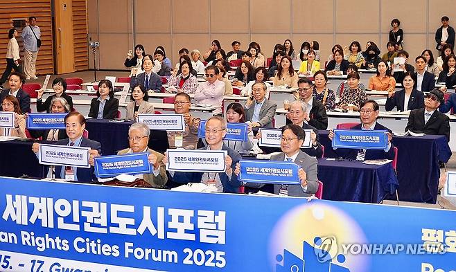 (광주=연합뉴스) '2025 세계인권도시포럼'이 15일 광주 김대중컨벤션센터에서 개막하고 있다. 이번 포럼은 세계 각국 인권 전문가 등 약 1천500명이 참석한 가운데 17일까지 진행된다. 2025.5.15 [광주시 제공. 재판매 및 DB 금지]
