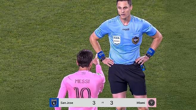 사건의 발단은 이렇다. 메시의 현 소속팀 인터 마이애미는 15일 미국 산호세에 위치한 페이팔 파크에서 산호세 어스퀘이크스와 2025 메이저 리그 사커(MLS) 13라운드에서 3-3 무승부를 거뒀다.