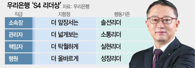 15일 금융계에 따르면 우리은행은 최근 직급별 행동 지침이 담긴 'S4 리더상'을 내부적으로 공유하고 매주 구체적인 내용을 제시할 방침이다.
